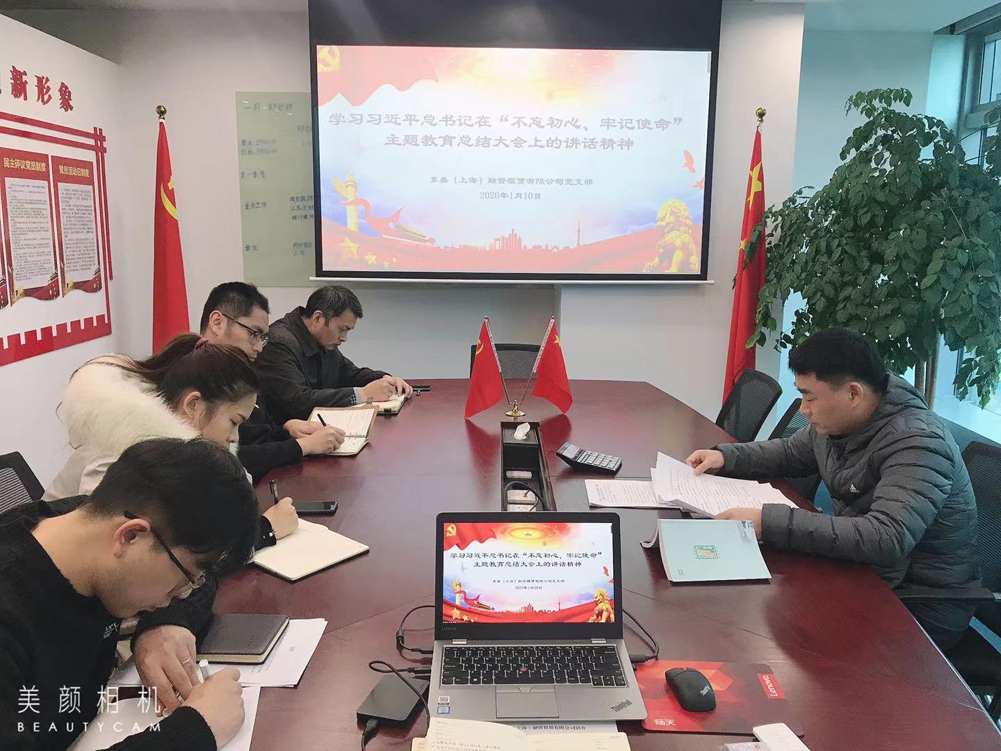 1月10日下午,東盛黨支部在黨員活動室開展了以“不忘初心、牢記使命”為主題的集中學習會議。會議傳達學習了習近平總書記在“不忘初心、牢記使命”主題教育總結大會上的重要講話精神并細細品味了習近平總書記在主題教育總結大會上的講話金句。在集中學習重要講話精神后,東盛支部觀看了主題教育總結大會視頻。