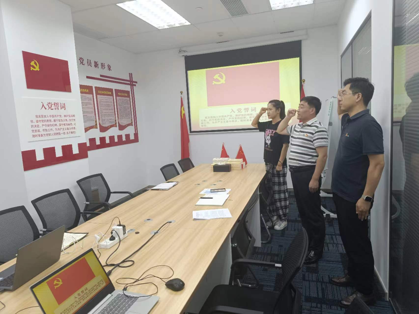 參觀結束后,在東盛公司黨員活動室,由東盛黨支部書記王智帶領全體黨員重溫入黨誓詞,并進一步闡明了黨員入黨宣誓的重要意義,要求全體黨員要時刻以誓言來激勵自己,以誓言為標尺,嚴格對照檢查自己,自覺地克服缺點、錯誤,始終保持共產黨員的共產主義革命性和先進性。