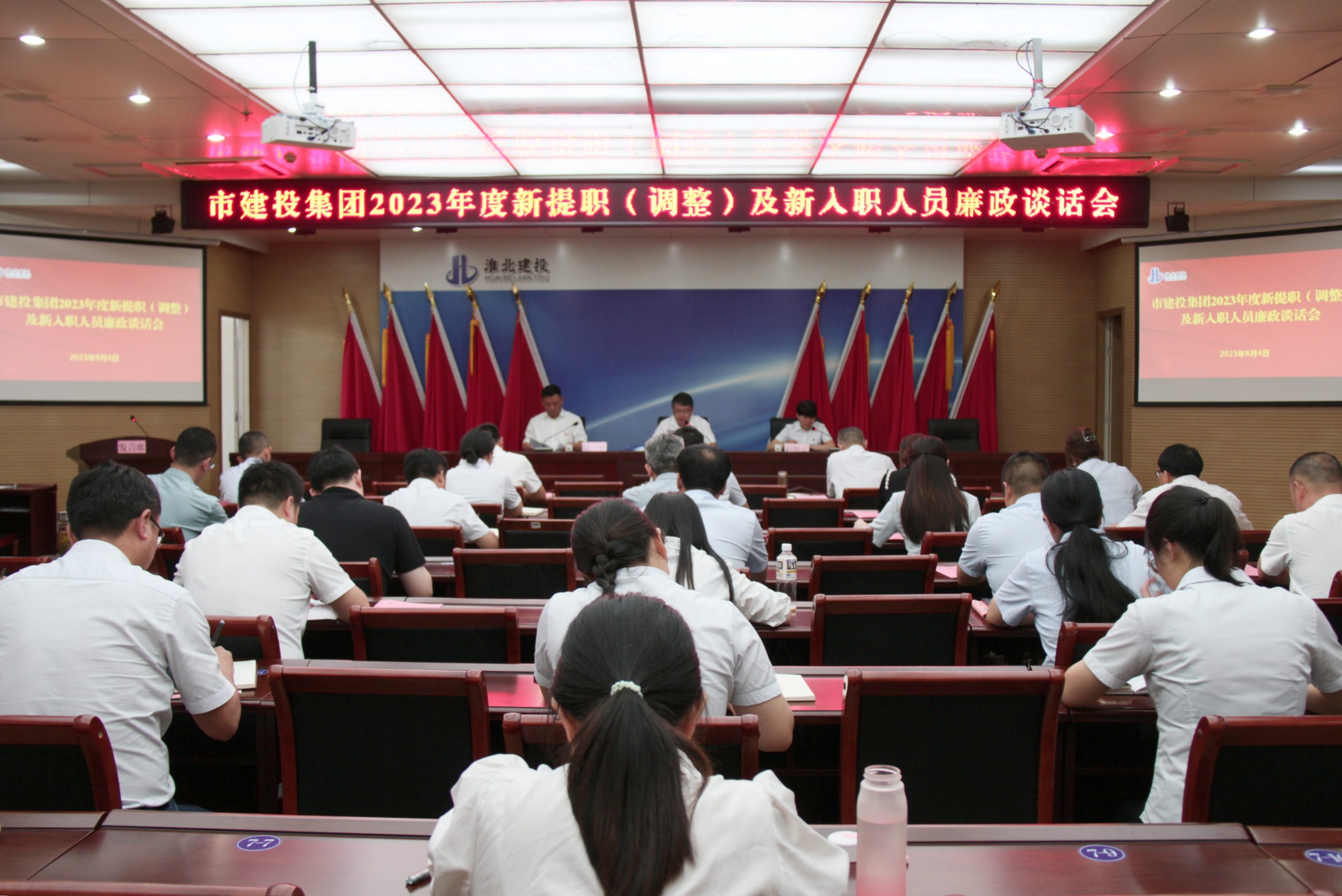 8月4日,市建投集團紀委在二樓會議室召開了新提職(調整)及新入職人員廉政大會。集團公司黨委委員、紀委書記姜斌、2023年度新提職科級管理人員及新入職人員參加了會議。