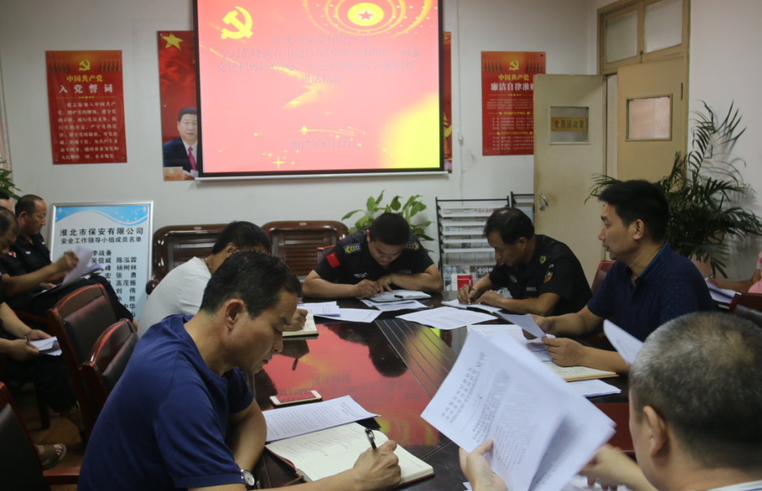 8月22日下午16時(shí),淮北市保安有限公司組織召開(kāi)領(lǐng)導(dǎo)干部及機(jī)關(guān)人員專題會(huì)議,傳達(dá)學(xué)習(xí)市委書記黃曉武調(diào)研建投集團(tuán)時(shí)的重要講話精神,研究部署貫徹落實(shí)講話精神的有關(guān)舉措。
