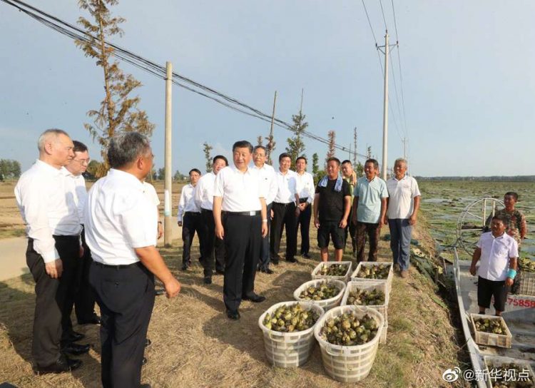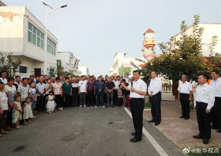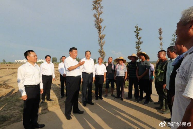 習近平總書記18日赴安徽考察調研。當天下午,他先后來到阜陽市阜南縣王家壩閘、紅亮箱包有限公司、蒙洼蓄洪區曹集鎮利民村西田坡莊臺,察看淮河水情,走進田間地頭,了解當地防汛救災和災后恢復生產等情況,看望慰問受災群眾。(文字記者:張曉松 攝影記者:鞠鵬 王曄)