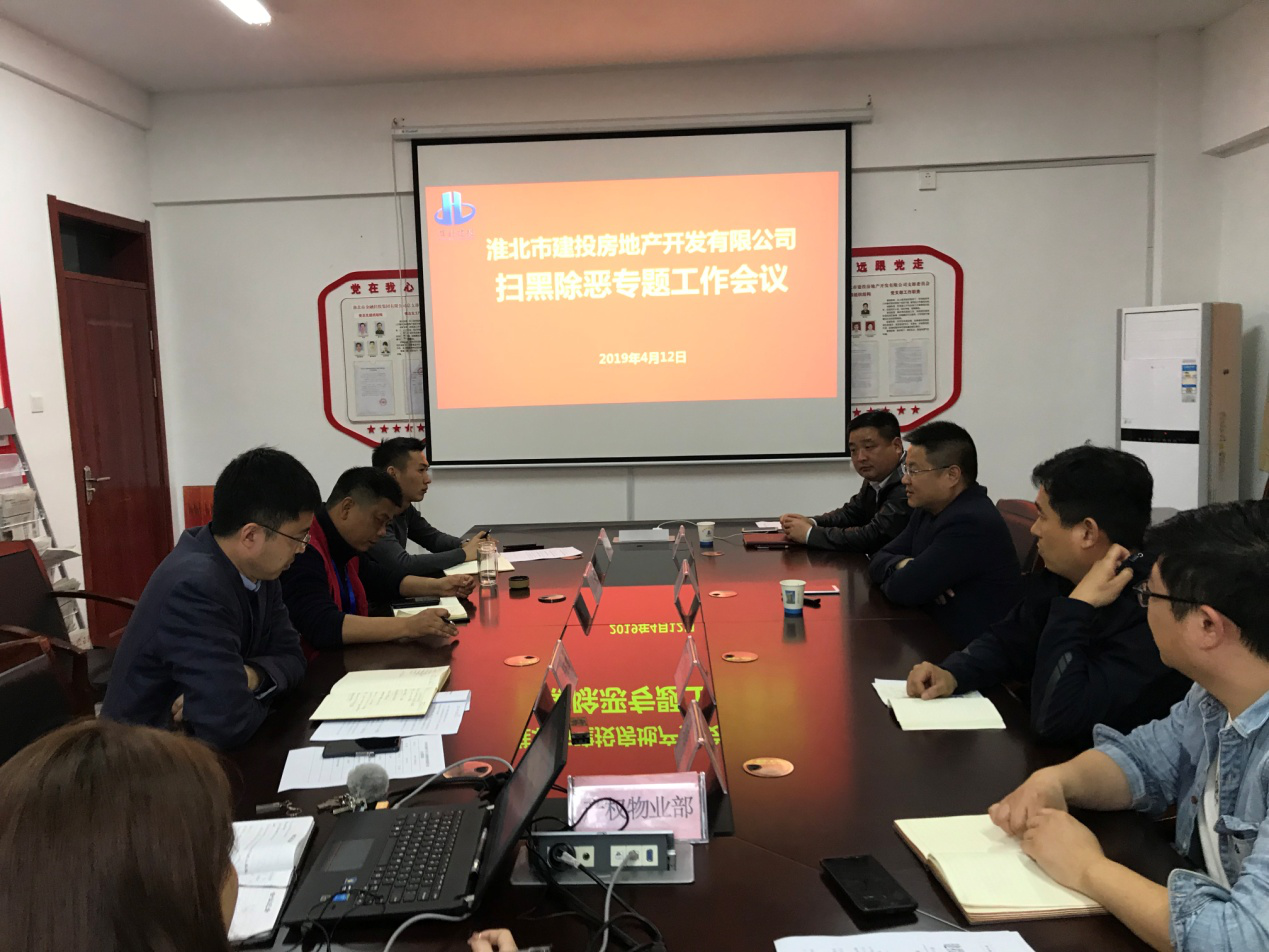 2019年4月12日,為響應國家掃黑除惡專項斗爭,房地產公司召開了掃黑除惡專項工作會議,認真學習了《關于開展掃黑除惡專項斗爭的通知》、《掃黑除惡專項斗爭應知應會內容》,對掃黑除惡專項斗爭工作進行了集中學習宣貫。