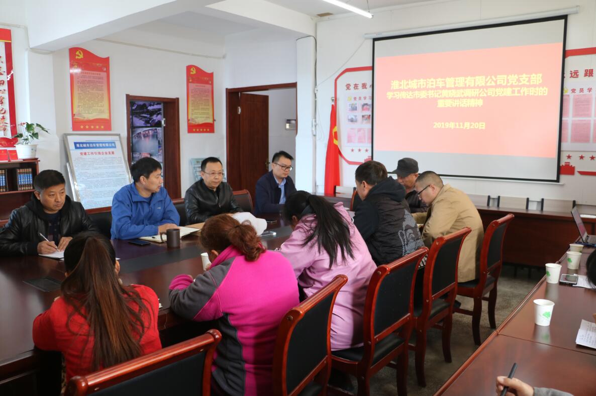 會議指出,在全市掀起學(xué)習(xí)貫徹黨的十九屆四中全會精神熱潮之際,市委書記黃曉武來到城泊公司就基層黨建工作進(jìn)行專題調(diào)研,充分肯定了城泊公司的發(fā)展方向、工作思路和黨建工作,鼓勵大家充分發(fā)揮黨員先鋒模范帶頭作用,打造便民服務(wù)優(yōu)秀戰(zhàn)斗堡壘。